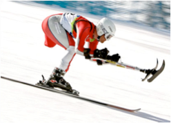 Photograph of Paralympic ski racer with adaptive poles. (Image obtained by Google Search on Internet)
